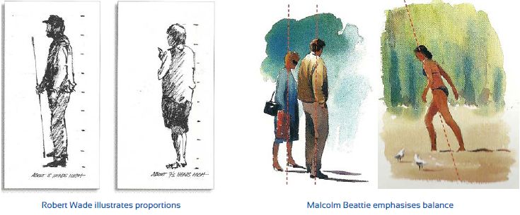 Practising by observation and sketching is paramount. There are plenty of locations: the beach, airport lounge, shopping mall, street, bus stop, caf. An obvious handy spot is the supermarket carpark. Locate your car with a view of the entry door, move to the passenger seat and capture shoppers coming and going. Stare at the figure, taking in an eyeful of shape, balance, tones and when it disappears, record in pencil or paint from your minds eye. Tuck a sketchpad and pencil into the pocket behind the car seat, so you can reach for it whenever youre waiting. Therell always be something to sketch and very often it will be people.