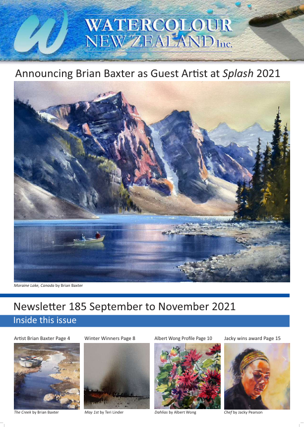 Watercolour New Zealand Society's quarterly newsletter features artists, insight news, practical painting tips, workshops schedule, event updates, as well as a roundup of all watercolour news.
