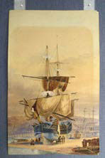 It has been common practice in the past for framers to glue watercolour drawings down onto cardboard backings in order to get rid of any undulation or cockling in the paper and keep the artwork flat for framing. These backings were usually a standard cardboard. Most of these contain ground wood pulp, which tends to age badly. (Newspaper is an example of a ground wood pulp product and we know how well that ages.) The cardboard will become more and more acidic over time, leading to increased discolouration and brittleness. Window mats were often glued over the edges of the artworks. These can also become acidic and cause a type of staining known as matburn. Most watercolour paper is of good quality and ages well, but prolonged contact with an acidic mount (backing board and window mat) can promote discolouration and staining to the artwork.