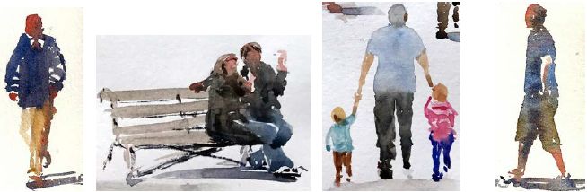 Are you new to the watercolour world and feeling diffident about including figures in your paintings? This article is a step-by-step guide towards populating landscapes and townscapes with figures. It is not about painting a figure as the main focus. We have gathered advice, tips and clips from a number of artists.