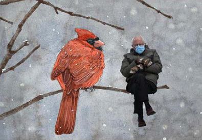 And - from Alison Hehir - just for fun, you can do what half the population is doing at the moment and photoshop a figure into your picture! As reference, the world craze to insert Bernie Sanders with mittens (from Biden Inauguration Day) into every situation conceivable! Heres one from Instagram, where watercolourist Kaite Ewing places Bernie into her painting of a bird. LOL!