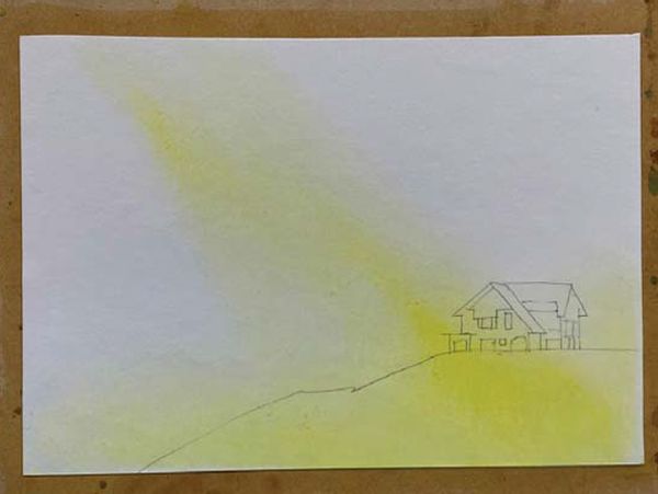 • Draw the horizon line low on the page and outline the house